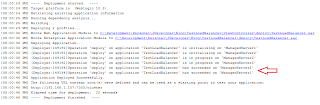 Observe at the log window that the deployment is successful for all managed server nodes that make up the cluster.