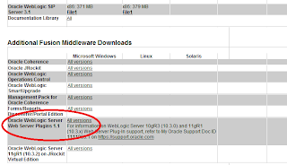 This will download a cumulative archive - called WLSPlugin1.1-11gR1PS2.zip - which contains all WebLogic plug-ins. Open the archive and extract the archive appropriate for your Operating System, for this example - a 64-bit Linux distribution - it is called WLSPlugin1.1-64bitApache2.2-linux64-x86_64.zip.
