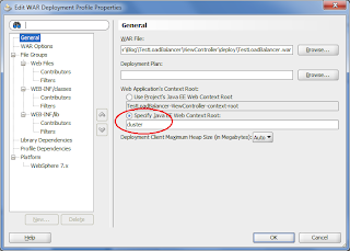 So, let's start JDeveloper and create a simple ADF application. On the Edit WAR Deployment Profile Properties dialog make sure that cluster is specified as the Java EE Web Context Root.